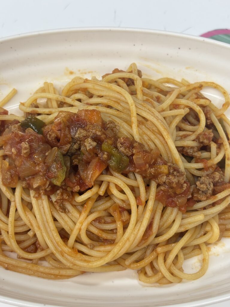 そして中学の卒業式で中学生が朝から来てたからミートソーススパゲティを作ってみんなで食べました。